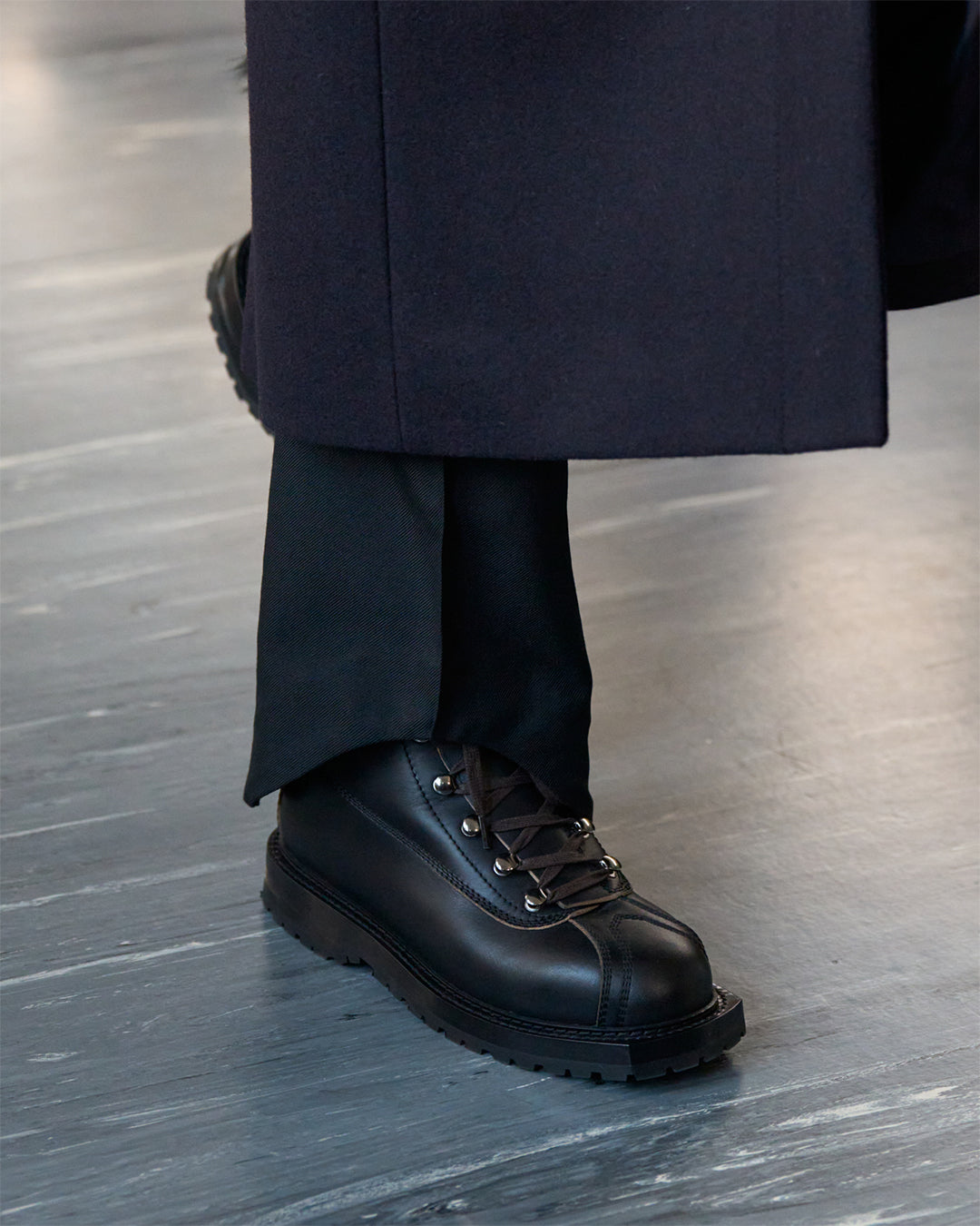 The German words "Leistung" and "Aufführung" both translate as "performance", the first based on achievement and the second self-expression. This duality of meaning informed a collection which navigates the parallels of routine and release. These interpretations coexist in tension, reflecting Creative Director Simone Bellotti's exploration of structure versus fluidity.